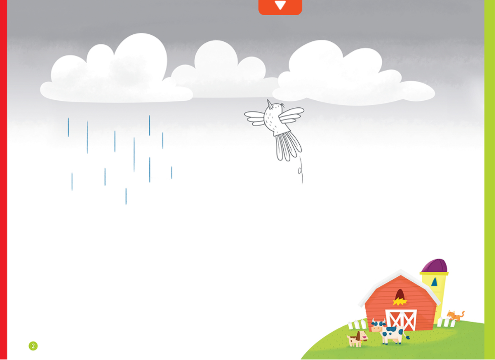 El primer cuento "En una nube blanca", Toc-Toc está feliz volando entre las nubes.